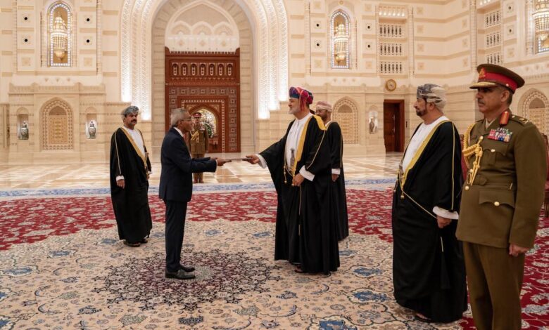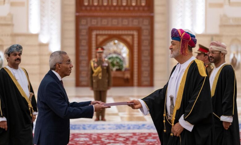 - قدَّم السيد السفير ياسر شعبان، سفير جمهورية مصر العربية لدى سلطنة عُمان، يوم ١٢ نوفمبر الجاري، أوراق اعتماده إلى جلالة السلطان هيثم بن طارق آل سعيد، سلطان عُمان، وذلك بمقر قصر البركة العامر بمسقط. التقى السفير المصري مع جلالة السلطان هيثم بن طارق آل سعيد، حيث نقل تحيات وأطيب أمنيات فخامة الرئيس عبد الفتاح السيسي رئيس الجمهورية لجلالته، وقدم التهنئة كذلك بمناسبة قرب حلول اليوم الوطني لسلطنة عُمان الشقيقة. كما أعرب عن تقديره لمشاركة صاحب السمو السيد ذي يزن بن هيثم بن طارق آل سعيد، وزير الثقافة والرياضة والشباب، في حفل افتتاح المتحف المصري الكبير بالقاهرة في الأول من نوفمبر الجاري، وذلك نيابةً عن جلالته، بما يؤكد خصوصية العلاقات المصرية–العُمانية. من جانب آخر، استعرض السفير المصري جوانب العلاقات الثنائية بين مصر وسلطنة عُمان الشقيقة، مع التركيز على التطور الذي تشهده تلك العلاقات تحت رعاية وتوجيهات قيادتي البلدين. من جانبه، نقل جلالة السلطان أطيب تحياته وتمنياته الصادقة للسيد رئيس الجمهورية، مثمنا حكمة سيادته في إدارة دفة الشئون المصرية على المستويات الداخلية والإقليمية والدولية، لا سيما في مواجهة التحديات الإقليمية غير المسبوقة، فضلاً عن إشادته بما حققته مصر من نهضة كبيرة في مختلف المجالات التنموية، ومعرباً عن تقديره الكبير لإنجاز مشروع المتحف المصري الكبير. كما أكد السلطان العُماني كذلك على تقديم كافة أوجه الدعم والمساندة لتعزيز العلاقات الأخوية بين البلدين والشعبين الشقيقين. حضر مراسم تقديم أوراق الاعتماد معالي السيد خالد بن هلال البوسعيدي وزير البلاط السلطاني، ومعالي السيد بدر بن حمد البوسعيدي وزير الخارجية العُماني.
