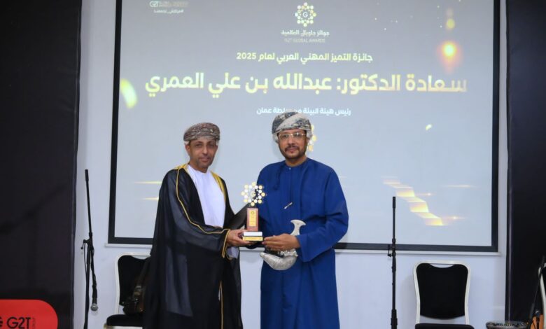 - فاز سعادة الدكتور عبد الله بن علي العمري، رئيس هيئة البيئة، بجائزة التميّز المهني العربي لعام 2025 في حفل جوائز جلوبال العالمية الذي أقيم في مدينة مراكش بالمملكة المغربية، تقديرًا لدوره في تعزيز منظومة العمل البيئي وترسيخ مسار الاستدامة في سلطنة عُمان. وقد جاء هذا التكريم ضمن الاحتفاء السنوي بالشخصيات العربية المؤثرة في مجالات القيادة والتنمية، حيث اختارت اللجنة المنظمة الدكتور العمري نظير إسهاماته البارزة في تطوير العمل البيئي الوطني، ودوره في حماية الموارد الطبيعية وتحقيق مستهدفات رؤية عُمان 2040 في المحاور البيئية والمناخية. وأكد القائمون على الجائزة أن هذا الاختيار يعكس تقديرًا عربيًا ودوليًا للجهود العُمانية في صون البيئة ومواجهة تحديات التغير المناخي وتطوير التشريعات وتعزيز التعاون الإقليمي والدولي في مجال الاستدامة. وتعد جوائز جلوبال العالمية إحدى أهم منصات التكريم العربية والدولية في مجالات الريادة والابتكار والاستدامة، إذ انطلقت منذ أكثر من عشرة أعوام بهدف إبراز النماذج القيادية والمؤسسية التي تسهم في دعم مسار التنمية في العالم العربي، وتُقام سنويًا في إحدى العواصم العالمية بحضور واسع من قيادات حكومية وشخصيات دولية. وفي تصريح لسعادته أعرب عن شكره واعتزازه بهذا التتويج، قائلًا: «يشرفني هذا التكريم الذي أعدّه تقديرًا لدور سلطنة عُمان وجهودها المتواصلة في حماية البيئة وصون مواردها الطبيعية. وهو في جوهره تكريم لجميع العاملين في قطاع البيئة من مؤسسات وفرق ميدانية وشركاء في مختلف المحافظات، وسنواصل العمل بكل التزام لتحقيق أهداف الاستدامة ودعم المبادرات الوطنية التي تعزز مكانة السلطنة على خارطة العمل البيئي إقليميًا ودوليًا». وتسلّم الجائزة بالنيابة عن سعادته المهندس سليمان بن ناصر الأخزمي، نائب رئيس هيئة البيئة، بحضور سعادة خالد بن سالم بامخالف سفير سلطنة عُمان لدى المملكة المغربية. ويمثل هذا التكريم إضافة جديدة لحضور السلطنة في المحافل البيئية الدولية، وتأكيدًا على الإنجازات المتحققة في مجالات الإدارة البيئية والتنمية المستدامة، والمبادرات الوطنية المعنية بحماية التنوع الأحيائي ودعم التوجه نحو الحياد الصفري الكربوني.