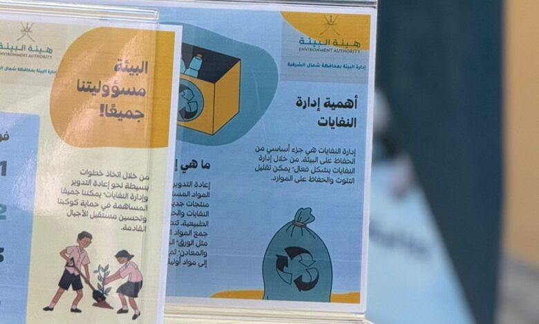 - احتفالاً بيوم كوكب الأرض، نظّمت هيئة البيئة بمحافظة شمال الشرقية، بالتعاون مع المجلس البيئي الطلابي، ملتقى توعوياً بمدرسة المصلى لتحفيظ القرآن الكريم بولاية سناو، بمشاركة عدد من الطلبة والمهتمين بالشأن البيئي. ويهدف الملتقى إلى رفع مستوى الوعي البيئي لدى أفراد المجتمع، وتسليط الضوء على أهمية الحفاظ على صحة البيئة، خصوصاً في ما يتعلق بالحد من النفايات البلاستيكية وآثارها السلبية. وتضمّن الملتقى عدداً من الفعاليات والأنشطة التوعوية التي ركزت على تعزيز السلوكيات البيئية الإيجابية، والتشجيع على استخدام البدائل الصديقة للبيئة، بما يتماشى مع مبادرات “سوق بلا بلاستيك” ومشروع “ثبات”. وفي ختام الملتقى، تم توزيع أكياس صديقة للبيئة على المشاركين، في خطوة تهدف إلى ترسيخ الممارسات المستدامة وتشجيع المجتمع على الإسهام الفاعل في حماية البيئة